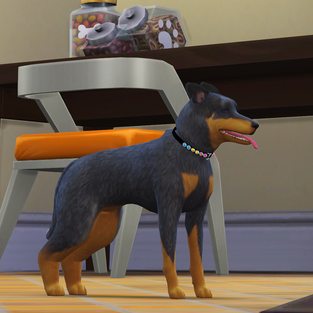 softly with contentment "I just finished sprinting a few laps around the cottage, it helped relieve my last tingle of anxiety, plus I feel like I could catch the fastest squirrel!" she barked with chipperness. The dog owners smiled, Austin stroked her and was glad